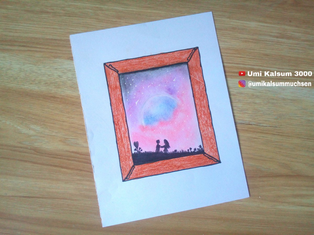 Tutorial Gradasi Warna Menggambar Pemandangan Bulan Purnama Crayon Oil Pastel