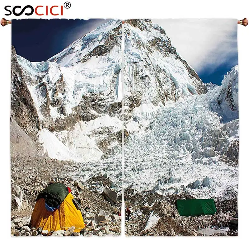 Us 38 9 50 Off Window Curtains Treatments 2 Panels Camper Everest Base Camp Scenery On Snowy Mountain Climbing Icy High Peaks In Curtains From Home