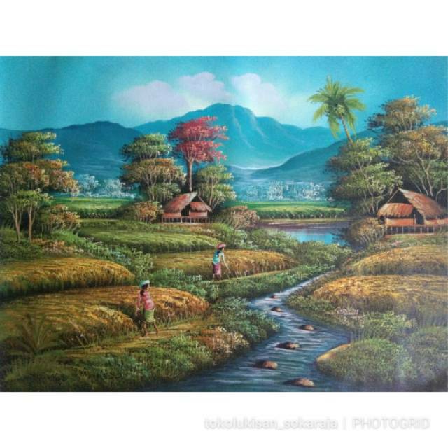 Jual Lukisan Pemandangan Sawah Padi Sungai Gunung Hiasan Dinding 1 Terbaru Harga Promo Desember 2019 Blibli Com